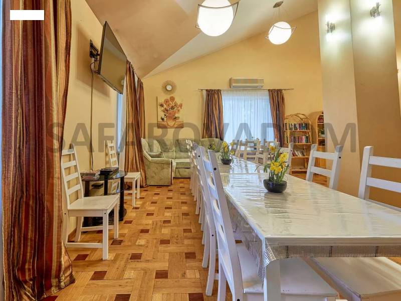№58 Сдаем посуточно коттедж с бассейном, баней, сауной и хаммамом. Коттедж 500 кв.м и отдельно стоящий банный комплекс с бассейном на участке 20 соток. Вместимость - до 20 гостей. Количество спален - 4 . Развлечения : спа комплекс - подогреваемый бассейн до 30 градусов 7 * 11 м2, хаммам и русская баня, сауна, купель. Интернет, караоке и блютуз колонка. Время заезда: 16:00 Время выезда: 12:00 Рассматриваем компании средним возрастом от 25 лет. В коттедже есть сауна, с небольшой купелью и водопадом, банкетный зал на 20 человек,4 спальни, в каждой комнате есть кондиционер . Полы на 1 этаже с подогревом . На каждом этаже санузел . Есть действующие камины, интернет, караоке, теннисный стол. Кухня оборудована всем необходимым и посудомоечной машиной. На облагороженной ландшафтным дизайном территории в 20 соток есть беседка с мангалом и шампурами , а также крытый, подогреваемый бассейн 7 * 11 м2, хаммам и русская баня . Стоимость аренды на компанию до 15 гостей. сверх 1100р с гостя Будни - от 28000р Пятница от 44000р Суббота от 63000р Полные выходные - от 100000р В стоимость входит бассейн с турецкой баней, сауна в доме, уборка, посуда, зона барбекю. Дополнительные платы: Русская баня на дровах 7000р за 4 часа Вывоз мусора 1000 р или можно вывезти самостоятельно Возвратный залог 15 т.р. Новый год с 31.12-02.01 от 286000р на 15 гостей Звоните и приезжайте на просмотр!